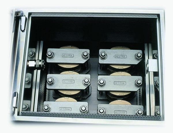 Large compartment with room for 12 flasks (6 clamps Ref. 030380 with 2 flasks each).