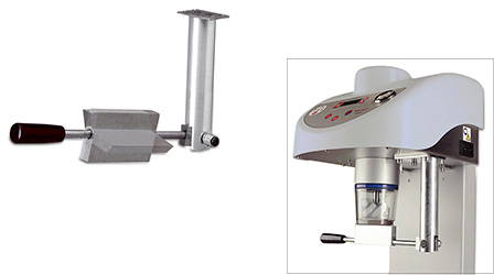 This machine is supplied with all necessary anchorages in order to fit it to the wall and with two bowls of 250 cc and 550 cc. There are also other accesories available like a fastening arm to bowls for mixing without vacuun techique and a base that changes it into a table model.