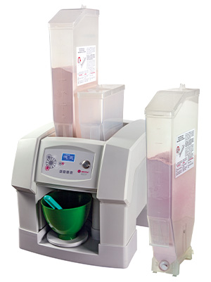 Dune esthétique élégante, ce doseur peut mémoriser jusquà 4 plâtres différents. Ill suffit de changer le réservoir à plâtre, programmer les cycles, et appuyer sur un bouton.