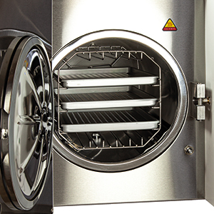 - Sistema de vacío triple fraccionado con un generador independiente de vapor, el cual garantiza ciclos de esterilización rápidos y seguros.