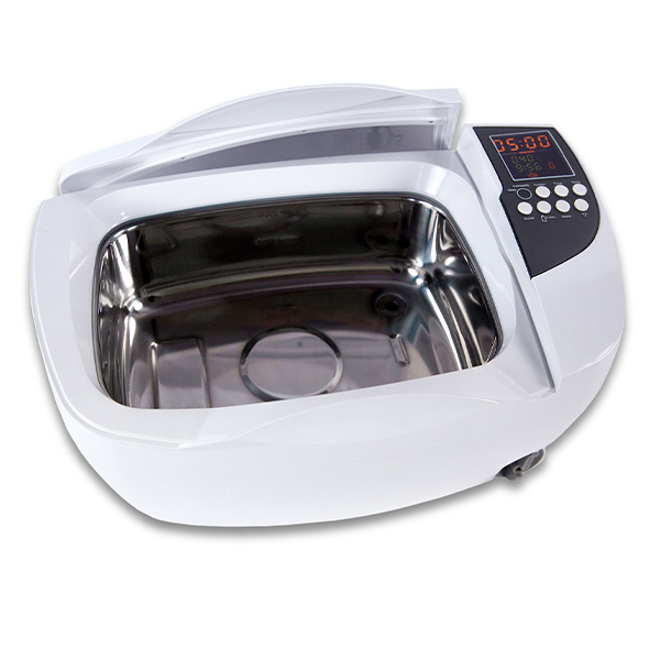 Baño de ultrasonidos de 3 litros. El tamaño de su cuba de acero inoxidable lo hace muy adecuado para la limpieza de pequeños objetos en el laboratorio y la clínica dental.