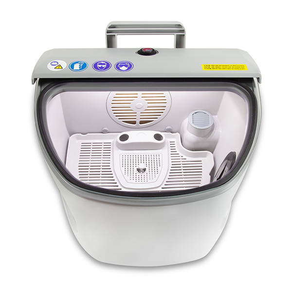 Caja de similares prestaciones a la cabina de repaso Eclipse (Ref. 080216), pero con la particularidad de integrar su propia unidad de aspiración.