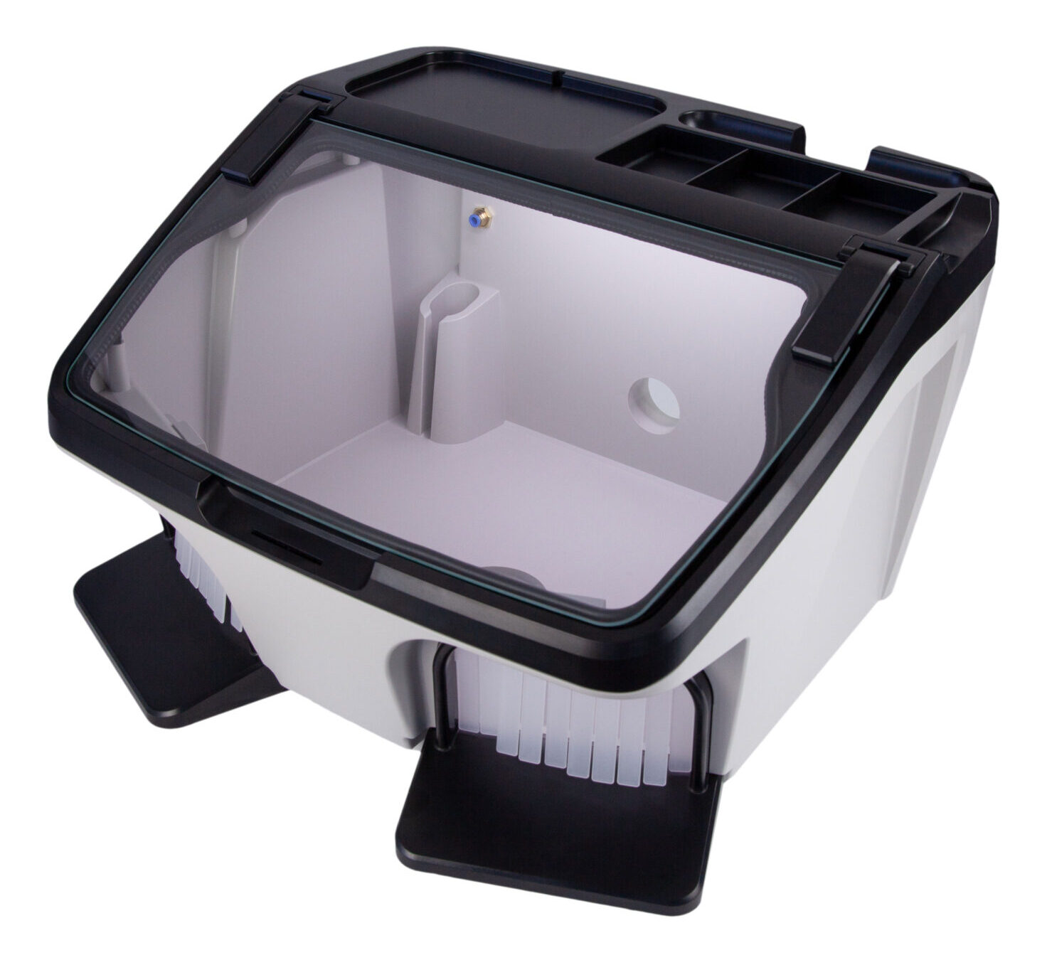 Cámara de trabajo muy amplia, iluminada y con conexión a aspiración