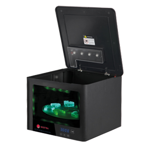 La lámpara polimerizadora por UV es un componente de las soluciones de impresión 3D. El dispositivo UV emite luz ultravioleta de forma constante, concentrada y uniforme para curar rápidamente las impresiones realizadas con resinas de fotopolímero. El proceso de curado posterior aumenta la dureza y la resistencia de los productos impresos. SUN BEAM 3D+ es la estación de fotopolimerización ideal para el laboratorio. Su simplicidad de uso, su tecnología avanzada, su relación calidad-precio lo convertirán en una referencia en el laboratorio de prótesis dentales del siglo XXI.